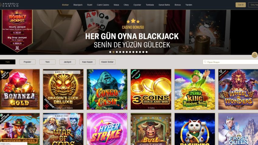 Anadolu Casino sitesi, tamamen, casino oyun hizmetleri için kurulmuş bir online oyun sitesidir. Bu siteye üye olanlar, slotlar, rulet, blackjack, canlı casino, masa oyunları, tombala gibi tüm oyun seçeneklerini oynama avantajına sahip olacaktır. Anadolu casino sitesi, üye olan ve oyunlar için para yatırma işlemleri yapanlar, bonus avantajları da sunuyor. Lisanslı hizmet verdiği için bonus alan kullanıcılar, çok sayıda oyun türünü bedava oynayabiliyor. Oyunlarda elde edilen kazançlarda hızlı çekim yapılabiliyor.