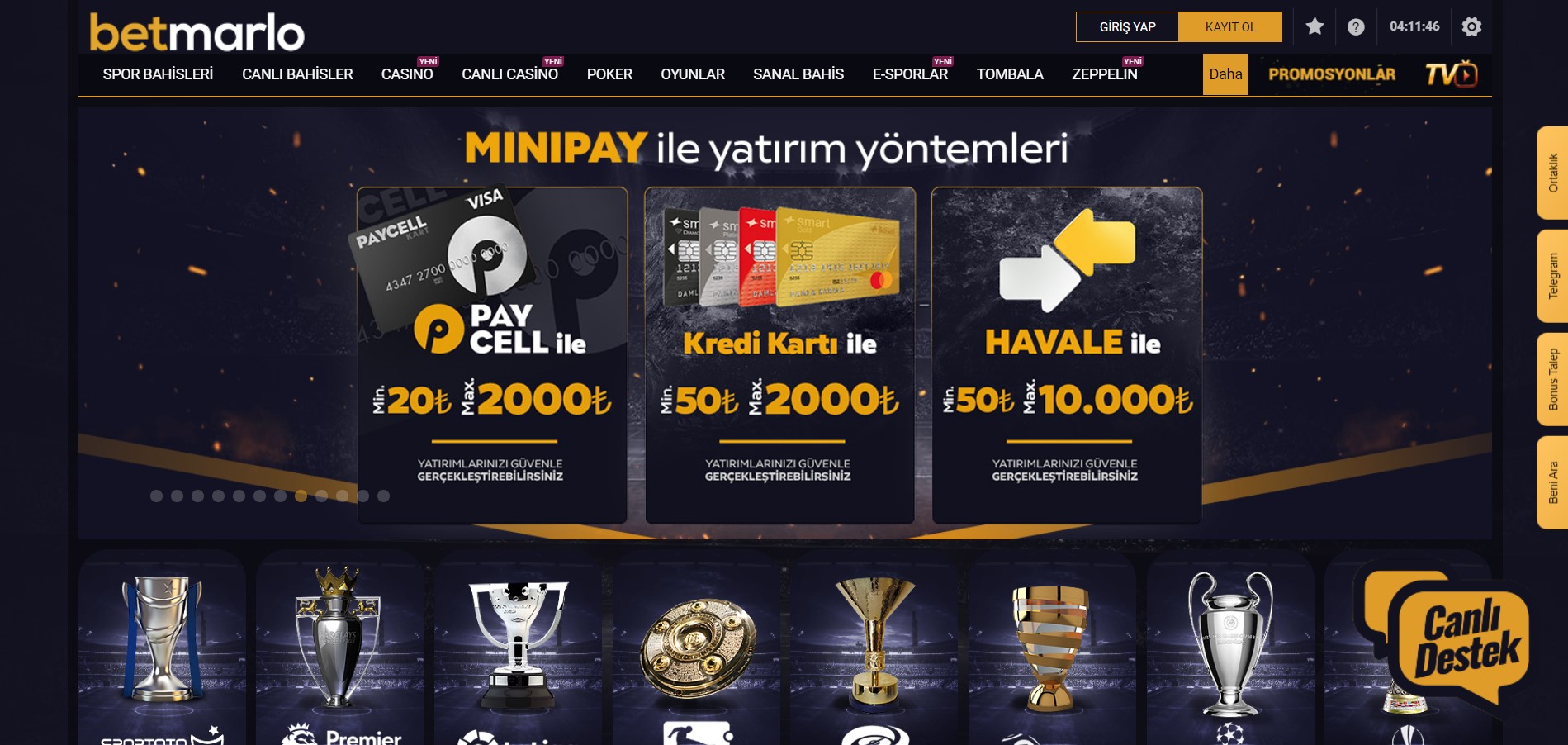 Spor bahislerinde öne çıkan ligler ve özel bahis türleriyle Betmarlo, bahis severlerin ilgisini çekmeyi başarıyor. Platformda yer alan bazı dikkat çekici seçenekler şunlar: