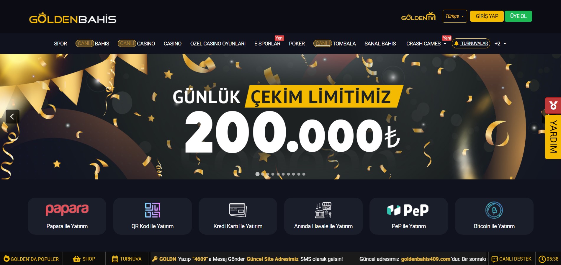 Goldenbahis’te para yatırma ve çekme işlemleri, kullanıcı dostu bir arayüzle sunuluyor. Banka havalesi, Papara, kripto para ve çeşitli elektronik cüzdanlar en sık kullanılan yöntemler arasında. Minimum yatırım ve çekim limitleri, yönteme göre değişiklik gösteriyor ancak genel olarak piyasa ortalamasında. İlk para çekiminde, yukarıda da belirttiğim gibi KYC doğrulaması için belge talep edilebiliyor. Bu süreç bazen birkaç saat, bazen de birkaç günü bulabiliyor. Kullanıcılar, para çekim taleplerini genellikle site içi panelden kolayca iletebiliyor; ancak belge eksikliği ya da bilgi uyuşmazlığı durumunda işlemler gecikebiliyor.