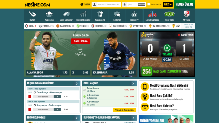 Nesine en güvenilir bahis sitelerinden biri olması nedeniyle çok fazla bahisçinin ziyaret ettiği sitelerdendir. Bahis sitesine ziyarette bulunanlar, üyelik işlemlerini tamamladıktan sonra sitenin sağladığı hizmetlerden faydalanmaya başlayabilirler. Nesine giriş tamamen güvenlidir. Sitenin yasal ve lisanslı olması da güvenilir olduğunun göstergelerindendir. Bahisçiler bahisleri hazırladıktan sonra yatırım yapabilir ve bahislerinden kazanç elde etmeye başlayabilirler. Bahis sitesi seçimi konusunda sorun yaşayanlar bu siteyi gönül rahatlığıyla tercih edebilirler.