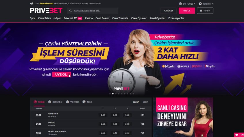 Ülkemizde hizmet veren bahis siteleri vergi kuralları ve BTK’nın yaptırımları nedeniyle güncel giriş adreslerini bazı zamanlar yeniliyorlar. Privebet sitesi ise güçlü yazılımları sayesinde, saniyeler içinde değişikliklerini yaparak sizlere hiçbir kesinti sorunu yaşatmadan hizmet vermeye devam ediyor. Privebet sitesinin en doğru giriş adresini sizlere anlık olarak sitemiz üzerinden paylaşıyoruz.